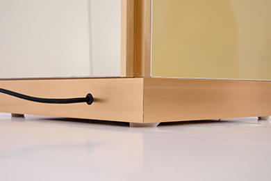 制作工藝:采用9厘UV板為基材,面貼5厘鏡面玻璃,開模制作鋁合金型材對角拼接,10厘超清超白鋼化玻璃臺面,鋁合金型材抗氧化處理,拉絲效果、電泳防指紋技術(shù)